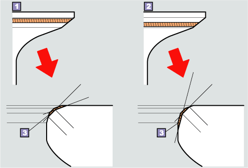 In order not to cut a groove or step in the surface, gradually reduce force as cutting nears completion |