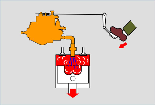 The diesel engine does not have a throttle valve for controlling engine output like the gasoline engine. The output of the gasoline engine is controlled by opening and closing the throttle valve, thereby controlling the amount of air-fuel mixture taken in.