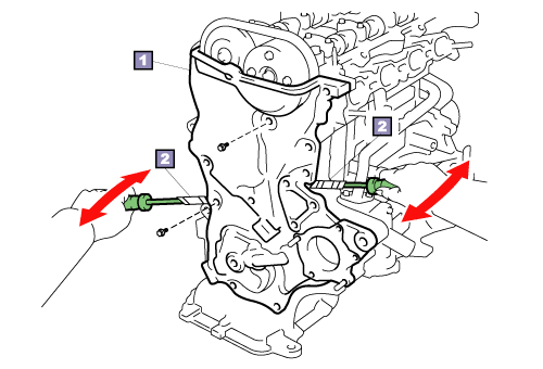 Insert a flat-head screwdriver between the chain cover and the cylinder head and block. After that pry off the chain cover.