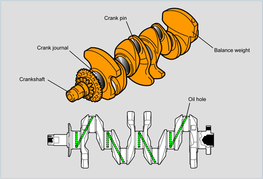 The crankshaft acts to convert the linear motion of the pistons into revolving motion.