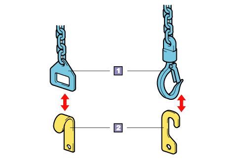 There are two types of engine hangers. Install the engine sling device that matches the engine hanger.